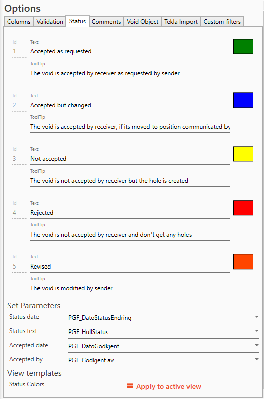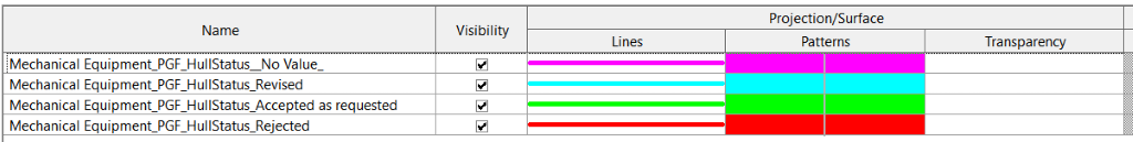 The 3D control views should be set up using a view template, where the colour of void elements changes according to status changes.